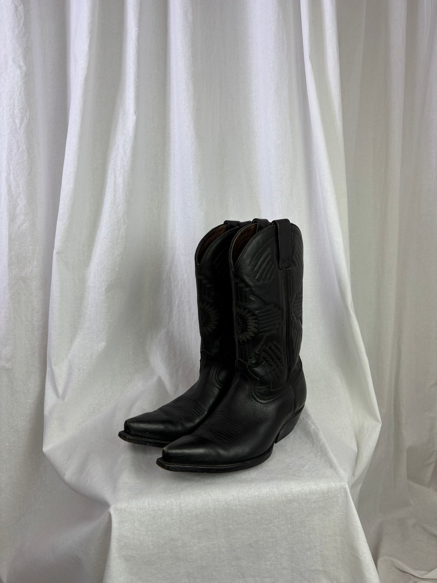 Santiags Go West en cuir noir vintage des année 1980 eighties bout pointu en très bon état