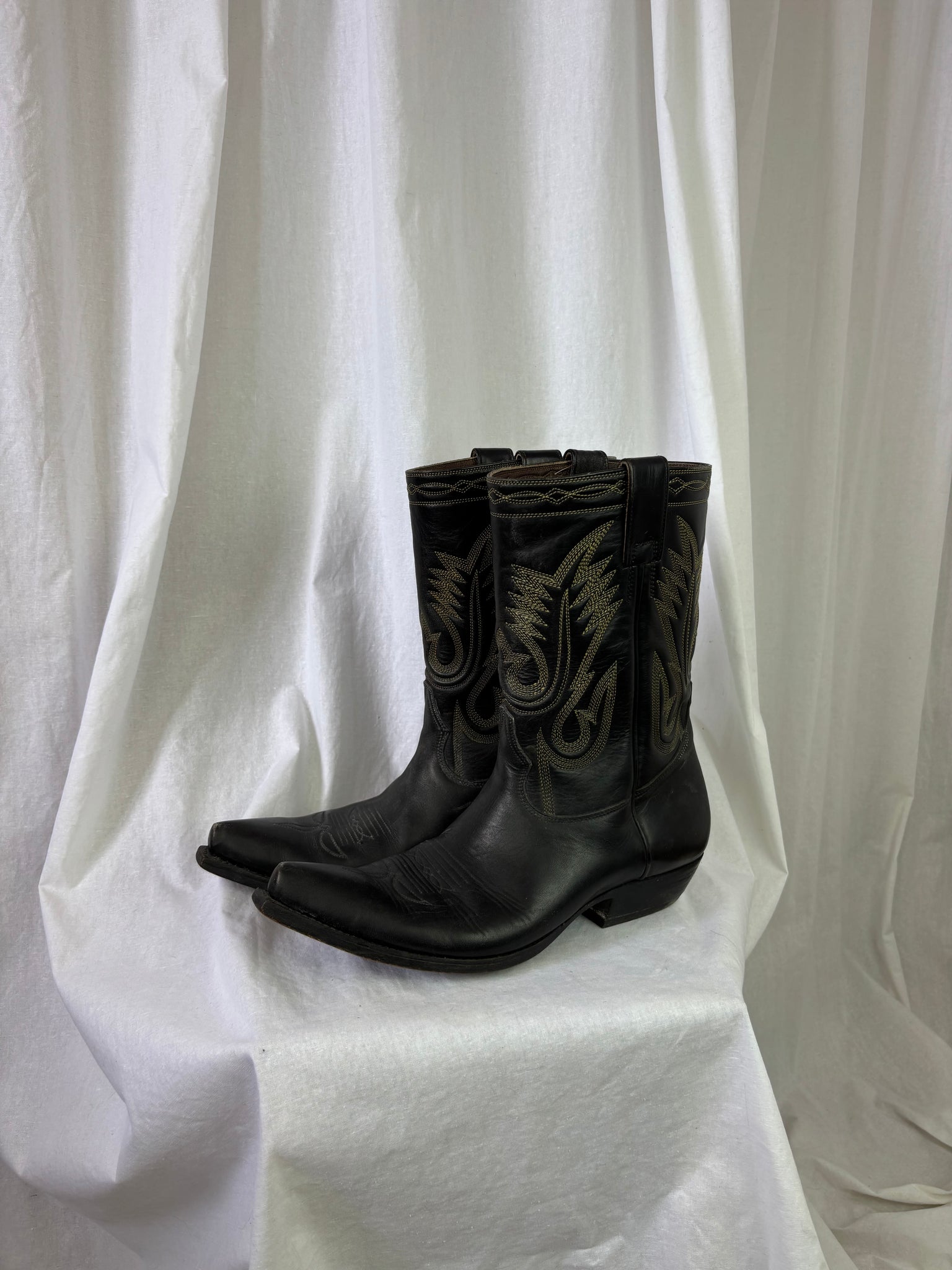 Santiags Mexicana en cuir noir vintage des année 80 bout pointu en très bon état